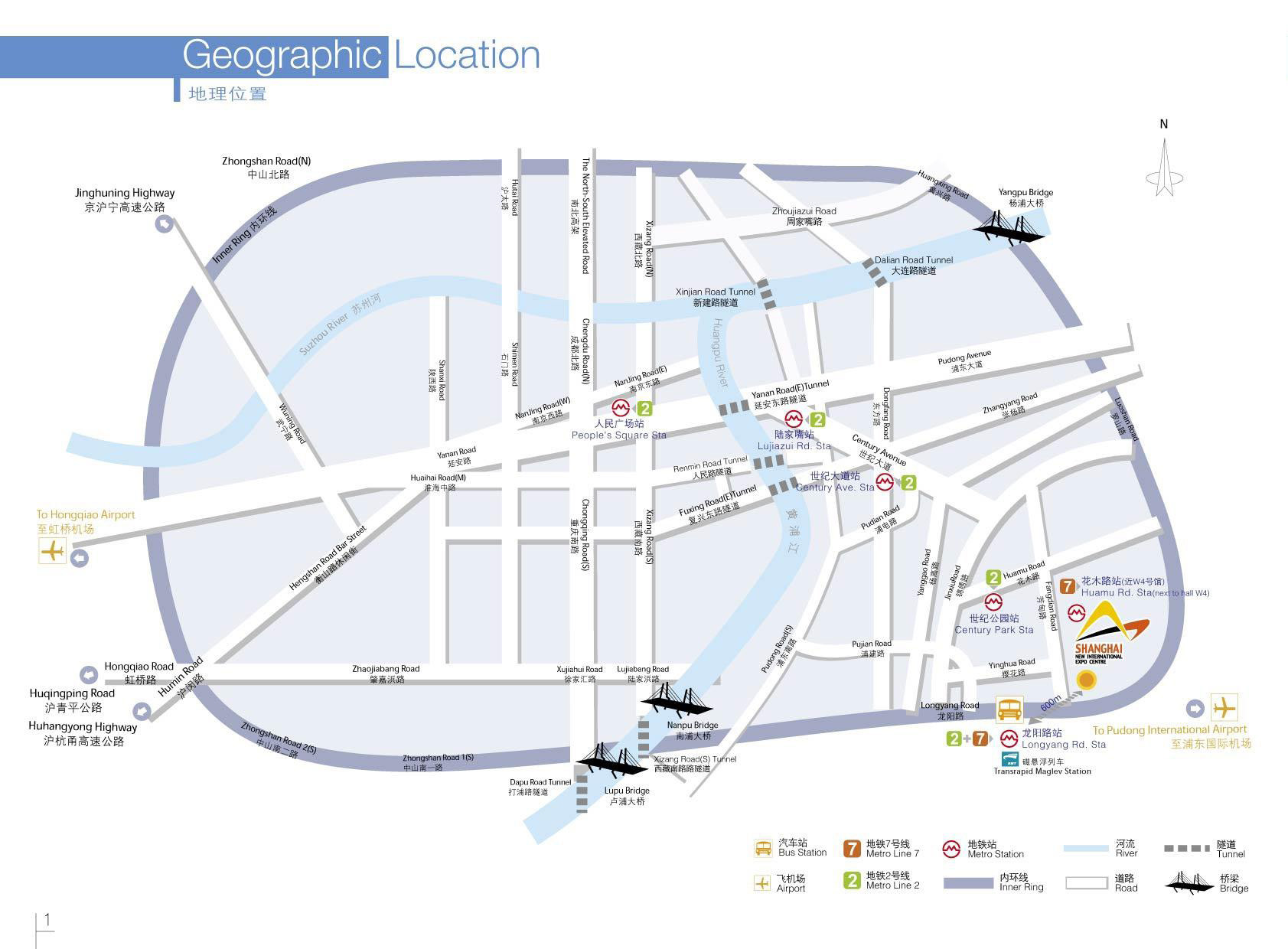 上海新国际博览中心(SNIEC)坐落于上海浦东经济与工业核心发展区。地铁7号线可直达SNIEC,其花木路站紧邻上海新国际博览中心W5号和N1号展厅。此外, 大型交通枢纽中心—龙阳路站(位于龙阳路上) 距离SNIEC仅600余米,地铁2 号线、地铁7号线、磁浮列车、以及多条公交线路交汇于此,由龙阳路站步行10分钟,即可抵达SNIEC。
